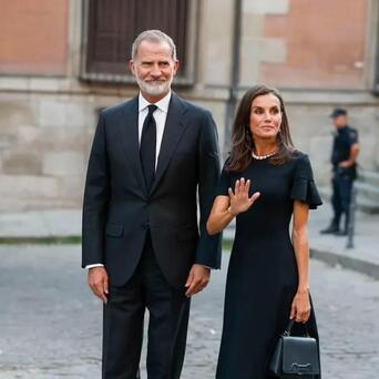 莱蒂齐亚王后和丈夫费利佩六世昨天一同参加表弟胡安的追悼会,她穿着职业